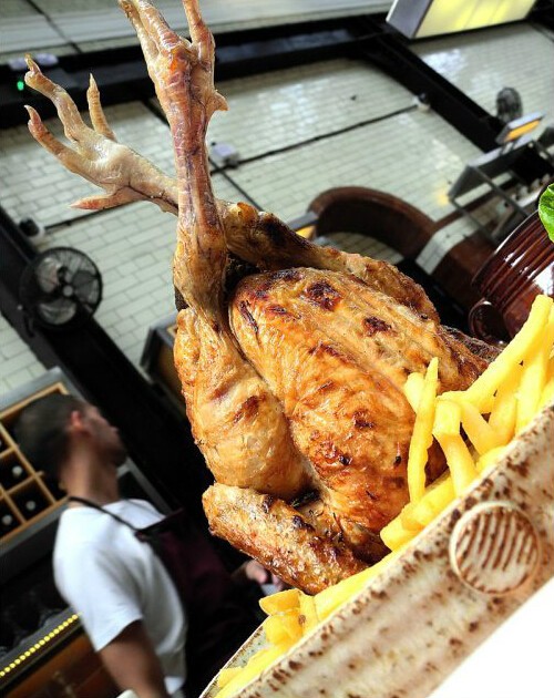 (倒栽葱烤鸡)