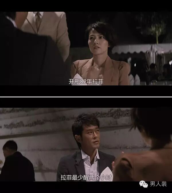 杜琪峰的另一部戏《单身男女》,上市公司高管要跟女神表白,便将其带到高级餐厅,点了瓶拉菲1982,还指定要醒两小时。但可能是因为面对女神,心中惴惴不安,高富帅竟然用一种不正确的方式“打开”了拉菲。