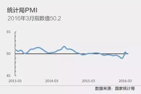 4月1日,国家统计局发布的数据显示,2016年3月份,中国制造业采购经理指数(PMI)为50.2%,比上月上升1.2个百分点,自去年8月以来首次回到荣枯线以上,重回扩张区间。(国家统计局网站)