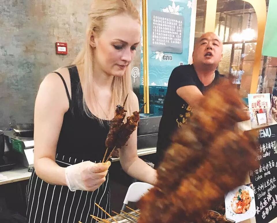 这大概是全场最火爆的烤串(后面的大哥有点抢镜...)