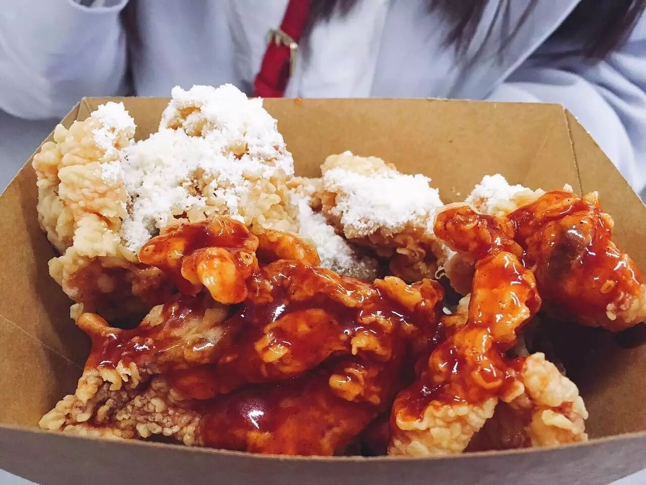 温柔的欧尼推荐梦厂给炸鸡洒上奶酪末,本来还在担心奶酪配炸鸡会不会太腻,入口之后发现其实奶酪末会让口感很清爽,不像酱汁那么黏腻~