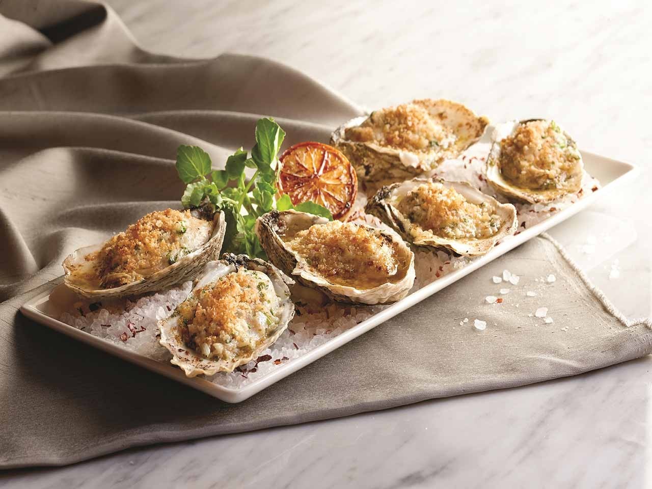 大个头的新鲜生蚝,用蒜香黄油汁简单地焗烤至将熟,蚝肉的清甜爽嫩保留得极好,同时也被浓香四溢的酱汁衬托得极好。虽然是荤菜,但并不过分刺激味蕾,反倒能在清雅的沙拉之后进一步打开食欲。