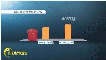 据南京市民政局官员介绍,从2015年1月到4月份,南京离婚9912对,但是从2016年1到4月份,离婚14571对,同比增幅为47%。民政部门表示,其实从去年下半年起,南京离婚的人就多了起来,与这一波的房价上涨不谋而合。(央视)