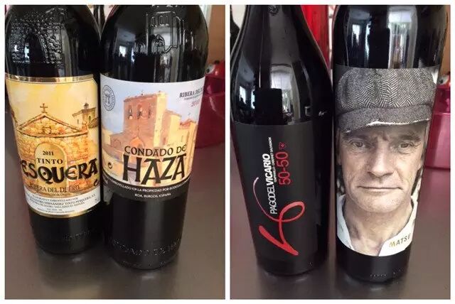 ▲ 左边两支为西班牙Ribera del Duero的红酒,右边两支是比较惊艳的西班牙红酒