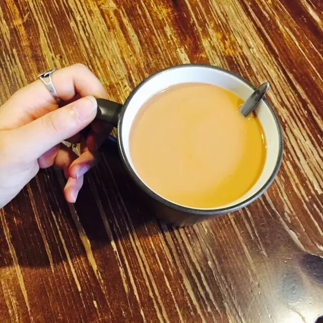 ►一杯饮料: 红茶奶茶,店里每日现煮的红茶,一走进咖啡馆,满满茶香