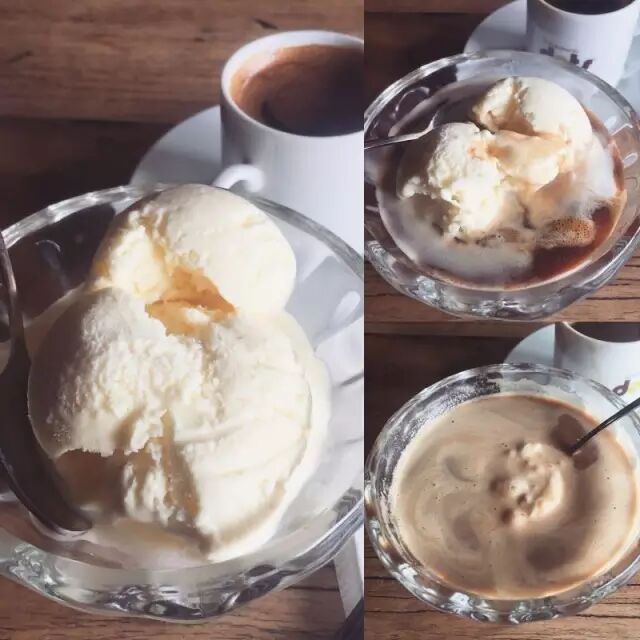 Affogato,意大利语“drowned",一坨香草雪糕球加上1个shot的espresso,第一次喝的时候是在Boston,回国后一直没有发现这样的做法,想不到Dots有。抱着怀疑的态度试了试,端上来一个小杯乘着雪糕球,另一个小瓷杯里装着espresso,慢慢淋到雪糕上,每一口都有不同的雪糕/咖啡配比。雪糕普普通通,但espresso真的挺浓的,喝完立刻不困了,爽~