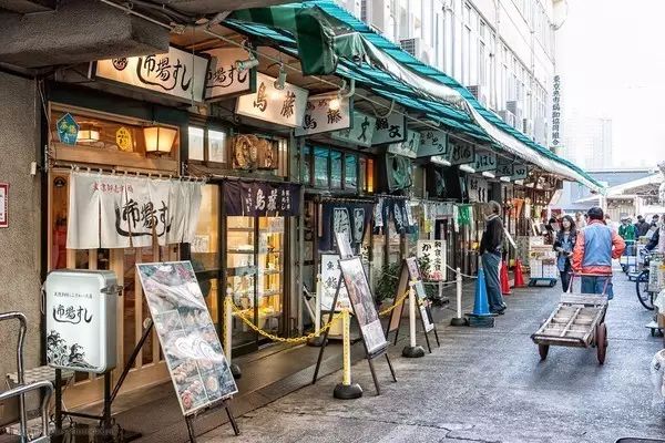 始建于1935年的筑地市场海外扬名,它是汇集了日本各路批发商、分销商的专业市场,早上5时便开始出现忙碌的身影。筑地市场分为场内市场和场外市场,旁边还有青果市场。场内市场主要负责生鲜海产的批发、竞拍和交易;场外市场则主要是海产、蔬果、干货、厨具的零售,以及寿司、海鲜饭、拉面、玉子烧各式各样的美食,场外市场完完全全是游客和吃货们的天堂。
