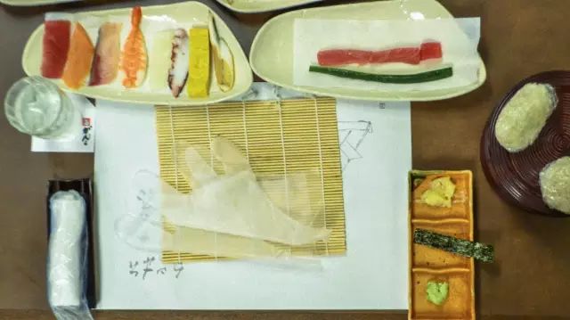 只有修为数十载的职人,才能捏出艺术品般的寿司。虽然握寿司对我来说实在是hard模式,可对心之所爱还是想切身体会呀。从第一个寿司的无所适从,不停回放自己偷偷录下的小视频模仿,到后来,还是有那么一点点像模像样的。捏完八贯寿司,被一旁的美国小哥夸“Your sushi is much better than mine.”心中还是有那么丁点成就感的,比《奔爱》里彭于晏捏了6年还捏了白饭强多了。当然了,这是玩笑话,自己也深知这离正儿八经的寿司还差得远。