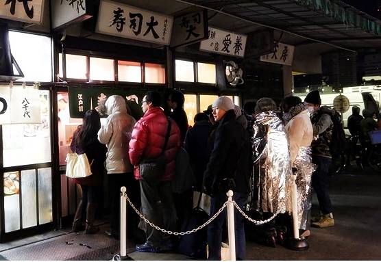 需要排队至少1-3小时不等的寿司大,用餐服务质量佳,寿司新鲜好吃到没话说!建议搭乘地铁者务必搭最早5:00班次来排队,大概一小时,再晚一点都要排两小时以上了。超推荐主厨推荐套餐(おまかせ:O-Ma-Ka-Se),有7颗或是10+1颗两种份量。
