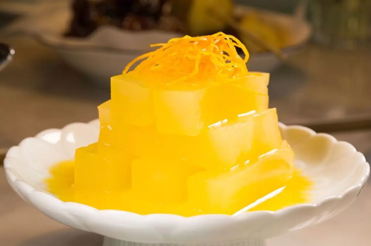 冬瓜条层层迭迭地堆起来有点像在堆积木,冬瓜爽脆中带点软烂,配上橙汁酸酸甜甜的味道,作为开胃菜最适合不过。