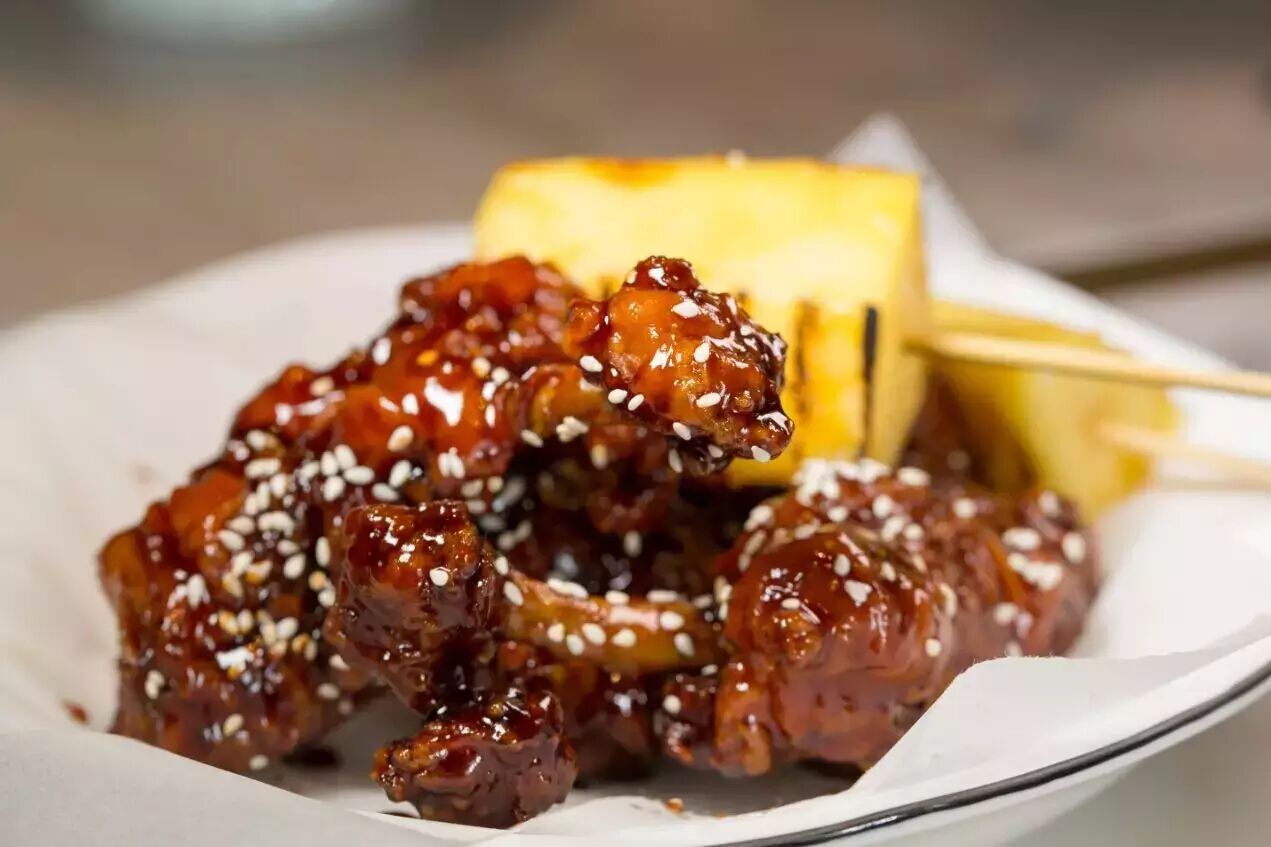 一上桌便可闻到糖醋酸酸甜甜的味道,让人口水直流。鸡花其实是鸡腿肉反起后先炸过,再裹上蜜糖和黑醋,外皮酥脆,鸡肉鲜嫩,让人一口接一口。伴碟的烤菠萝也有画龙点睛的效果,菠萝鲜甜多汁,吃完清新解腻。