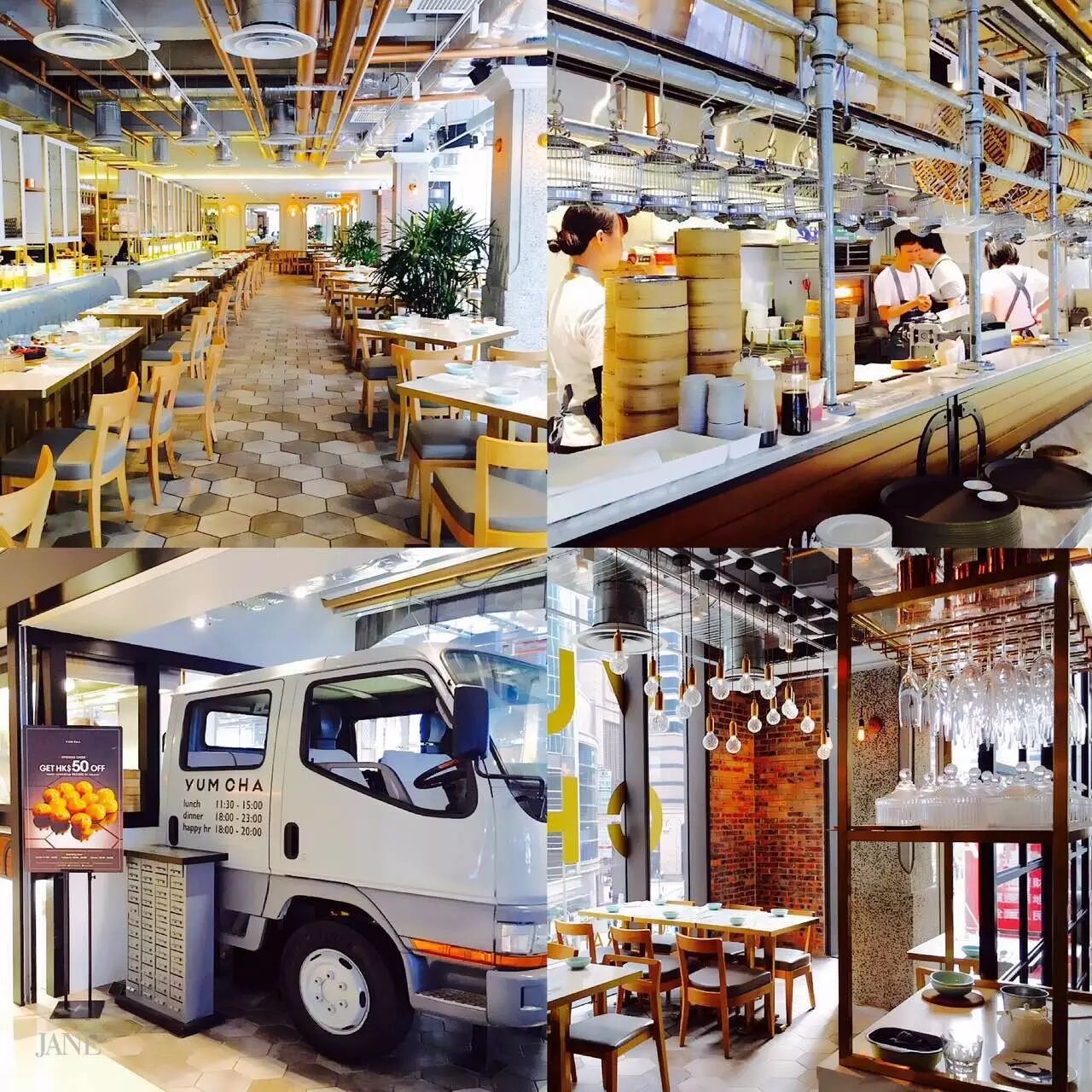 整个餐厅的装潢也很潮,上环店的门口还摆放了一个卡车车头的装置艺术,远看好像是拉着一箱厨师要去街头卖点心外卖!这里基本上已经成了香港年轻潮人必去的打卡餐厅,图中海报上可爱的点心就是这里的招牌!(下面有详细介绍)