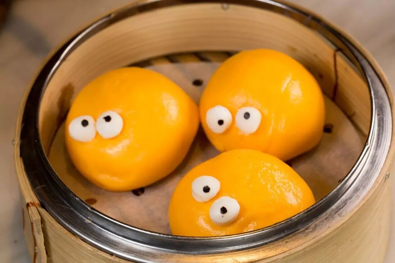 这是YUM CHA的招牌点心,表皮用干笋汁做成橙色,造型有点像玩具总动员里的三眼怪。叫这道点心的指定动作,就是用筷子戳穿外皮,让奶皇馅流出,先来一张自拍,然后再一口咬下,内陷随即倾泻而出,奶皇味浓,又不会太甜!这款点心还有另一种绿茶口味的“吉川奶子”,绿茶和中式包点的搭配有意外惊喜,喜欢绿茶的你,一定要试试。