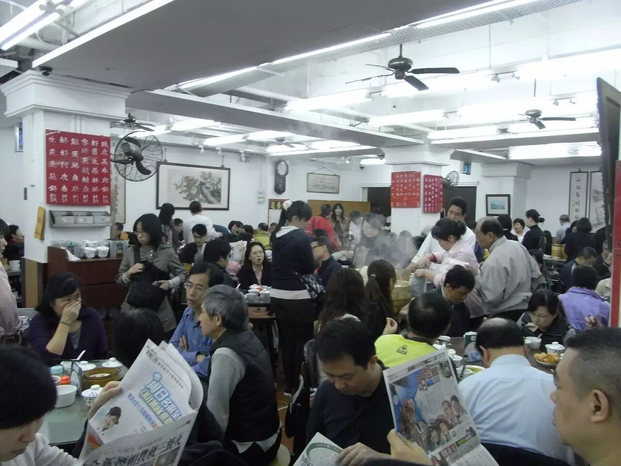 这里的服务员基本都是上了年纪的阿叔,可能不会有人帮你安排座位,没有随传随到的服务,我倒觉得反而体现了一种老可爱的真性情!这里真的是人气巨旺无比,小车上的点心一推出来就被抢光了,有的甚至要直接跑到厨房里去端。我去过好几次,稍微晚一点想要点的菜就都卖光了。所以想要体验这种老香港生活气息的旁友,做好战斗准备再来吧!记得最好要提前定位~