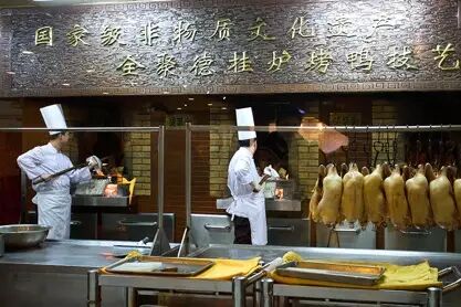 现在的情形是,如果你在前门附近想吃烤鸭,除了全聚德前门店,还可以去同为老字号的便宜坊烤鸭,或者最近几年火起来的四季民福烤鸭、利群烤鸭,当然,在前门附近各个胡同还分布着近20家烤鸭店,价位也相对便宜,客单价在50元-100元之间。
