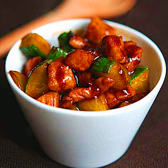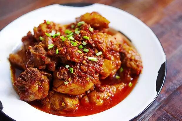 贵州的八块鸡,有葱烧、酱烧与红烧,家家有本自己的经,过一村或转一个寨子,味道便大不同,尤其是自家腌制或酿造的酱料,滋味亦可以天南地北。至于远近驰名的辣子鸡或鸡丁,多半用嫩姜与蒜瓣一起在石臼桩烂后,热油爆炒成糍粑辣椒,再油爆鸡丁,一起焖得烂熟,易长期储存,便于早期转战沙场的军旅或商旅携带。对于经常迁徙的贵州人来说,经年累月不腐坏的食物,是最佳常备粮。这八块鸡与辣子鸡丁,可以说是宫保鸡丁的原生鼻祖。