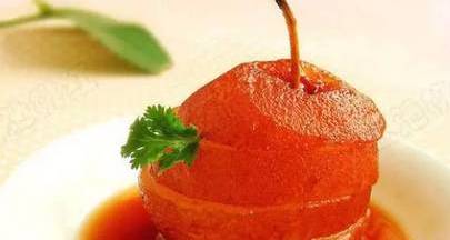 1. 梨去皮后,保持梨的完整和梨柄,将梨、红酒、冰糖一起煮,不要加水,红酒要没过梨身,可以用个小点的锅来煮;
