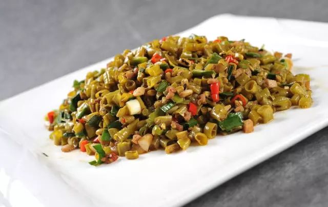 2.豆角洗净,切成粒,待用。