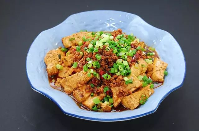 食材:豆腐,肉末,油,盐,葱,姜,蒜,料酒,豆豉香辣酱,耗油,酱油,老抽,糖,玉米淀粉