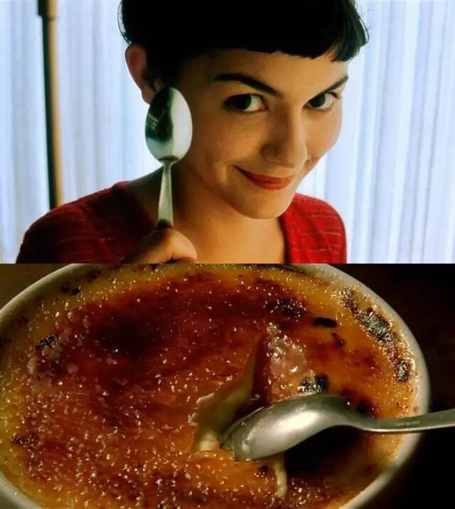 在电影《天使爱美丽》中,艾米丽觉得用勺子敲破焦糖布丁上面的焦糖可以带来奇妙的快感,酥脆的响声带着小小的破坏性,而把冷热交融的焦糖布丁放进嘴里时,苦涩与甜蜜交融,像是在与它谈感情。