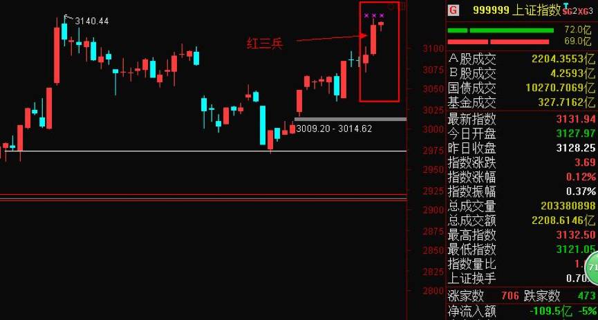 |特约《牛股大轰趴》嘉宾林整华点评| 上证虽然周二收小阳,但量价配合没有得到进一步有效放大。由于K线组合呈现“思考红三兵”,预计短期震荡不可避免,波动范围则是在3100-3158之间,中期依旧为震荡向上格局不变。