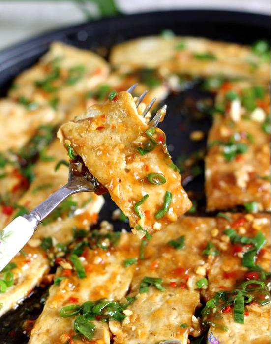 撒上葱花,非常简单美味的豆腐做好了,没有电饼铛的话用平底锅也可以。