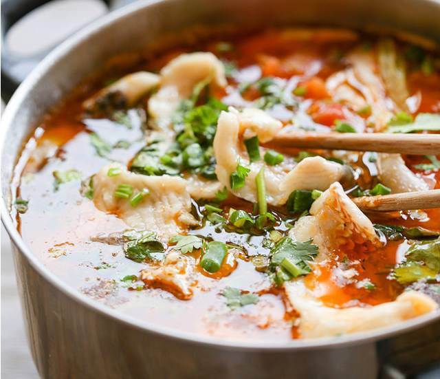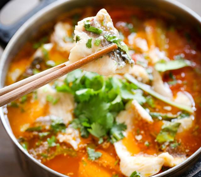 6.两勺热油,淋在鱼片上,中火再次煮沸,撒上香菜和葱即可。