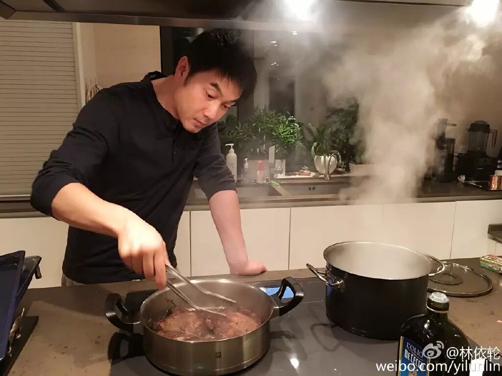 林依轮在自己的美食节目中做着“火腿春笋汤“。