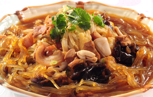 16. 加入泡软的干粉皮。