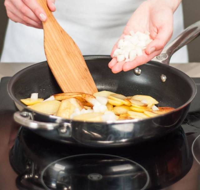 材料 1 / 4个洋葱、2个土豆、6个鸡蛋,植物油、胡椒粉、盐适量