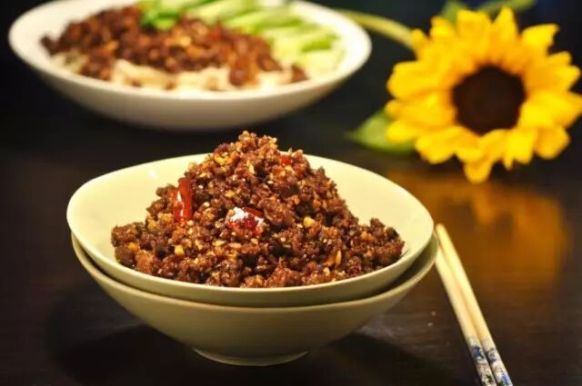 在香辣酱的基础上多加豆豉和红油,大概用豆豉7.5-10千克,红油用7.5-10千克,也就是炒郫县豆瓣酱时,量要增大。豆瓣酱咸味较重,盐可以不加。
