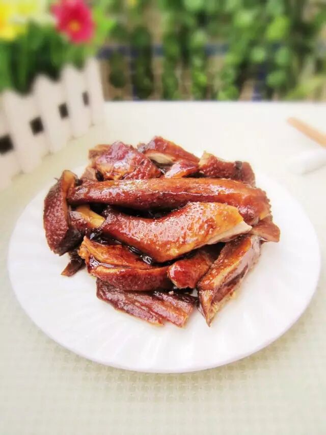 原料带骨鸭肉500克、腐竹适量、八角2个、桂皮2小块、香叶2片、花椒十余颗、冰糖2小颗、干辣椒、生姜、大蒜、葱、料酒、生抽、老抽各适量。
