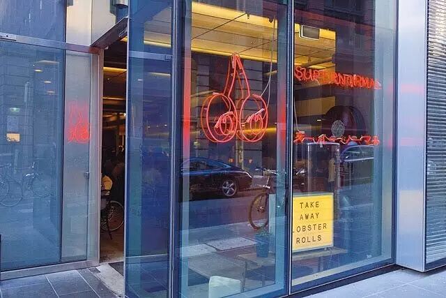 主厨是拥有多家帽子餐厅的Andre McConnell(澳洲没有米其林,当地用帽子来衡量餐厅等级);但不同于姐妹餐厅的一本正经,Supernormal走的是轻松随意的路线,装潢设计主打八十年代的日本风:以霓虹灯勾画的招牌、像寿司一样的开放式厨房、零食贩卖机等等。