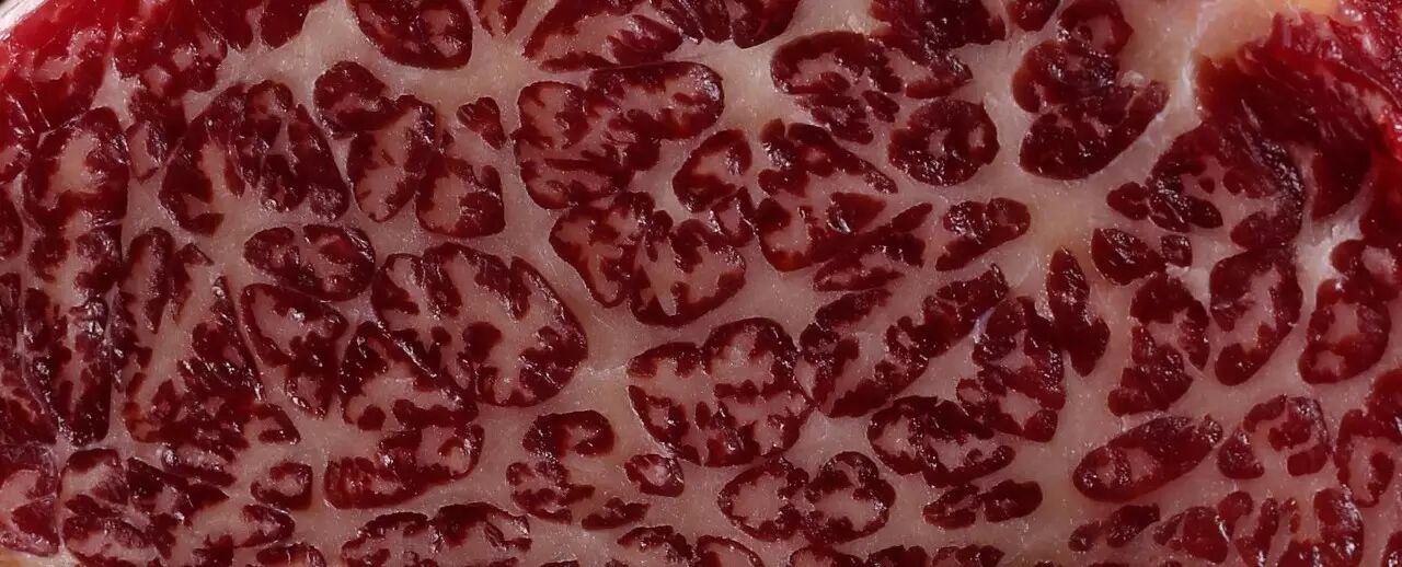 小黄牛都是耕地的牛,脖子上背着犁,反复行走在高高低低的山间,必须要经过一些年月的成长,在反复的劳作重压下,脂肪慢慢压进肉层里,这才能成为雪花,才是带给我们细嫩口感的关键要素。