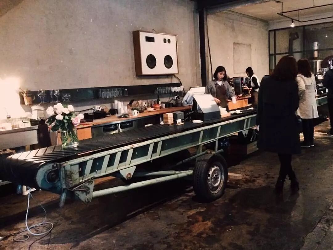 店主接手后并未在装潢上花太多的心思,而是极大的保留原工厂的外貌,斑驳的外墙,铸铁般的店名相比起刻意仿造的工业风格的咖啡就显得舒服很多。与其说Anthracite是一家咖啡馆倒不如说是一家咖啡工厂,因为极大的保留了原工厂原本的面貌,工厂的传送带被作为传送咖啡和甜品的作用,另外制作烘焙咖啡豆的大型机器以及咖啡制作过程你都可以近距离接触观看。