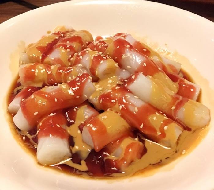 混酱蒸肠粉是香港老字号的小食,在北京吃上,新旺是第一家。芝麻酱、花生酱、番茄酱、甜辣酱和一点耗油,咸度甜味恰到中和点,缠绵地贴上蒸的糯糯的小段肠粉,咬下一口,浓郁的酱料愈凸显肠粉本身清甜,很特别,也很熟悉。