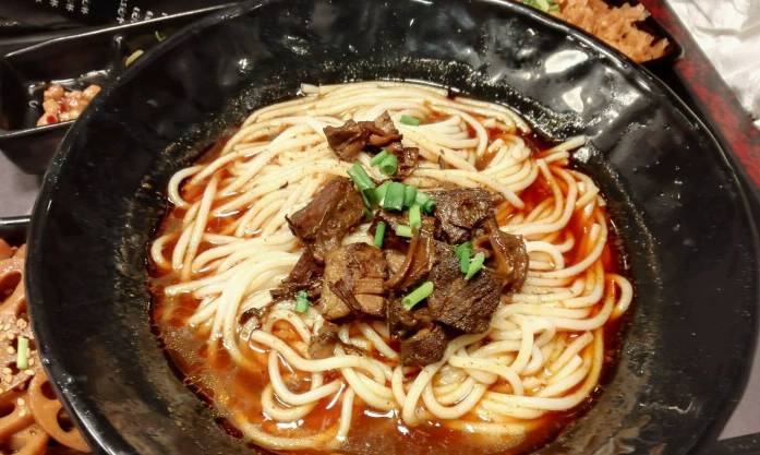 与广西米粉靠汤底调味不同,这粉的汤底主要靠加的辣子、辣油调味,但注意不要加过多辣油,会完全掩盖米粉本身的味道。桌子上三种不同的辣椒,非常特别的凤凰白辣椒是首选。红烧牛肉粉中的粉吃起来韧中带脆,牛肉炖的软软的,很入味。