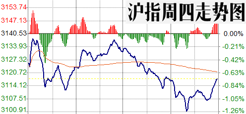 受到美联储加息的影响,沪指周四低开,随后一度呈现出单边下跌的走势,盘中最低触及3100点,获得支撑后小幅走高。盘面上,权重股杀跌严重,小盘股则相对活跃,量子通信与零售板块成为最活跃的板块。 截至收盘,沪指下跌0.73%,报收3117点;深成指上涨0.23%,报收10256点;创业板上涨0.65%,报收1975点。