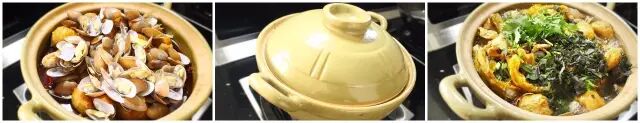 7.盛出来的花甲呈开口状为好,放置一边备用