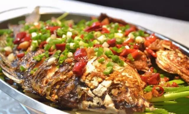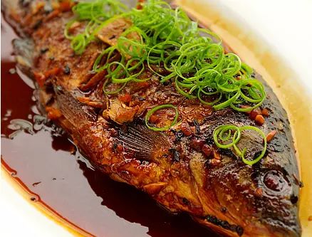 2、冲入适量开水持平鱼身,开大火将汤汁收干,江浙口味的话可以适当的撒点白砂糖进去。出锅前撒入适量鸡精和细香葱花即可。