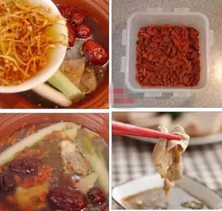 2、然后把虫草花和泡虫草花的汤一起倒入锅内,开始炖,水开后炖2个小时。准备一点枸杞。