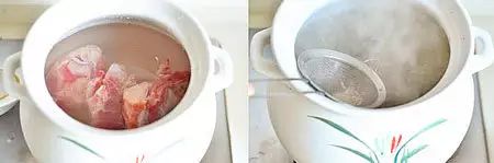 大火烧开持续煮2-3分钟,将血沫用滤网完全去除干净。