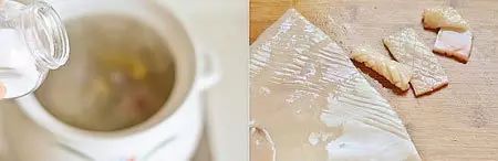 3、再加少许白胡椒粉,继续炖。炖约15分钟鱼汤呈奶白色,关火将鱼汤滤出。鱼汤加入洗净的粳米放入高压锅中煮成粘稠的鱼粥。
