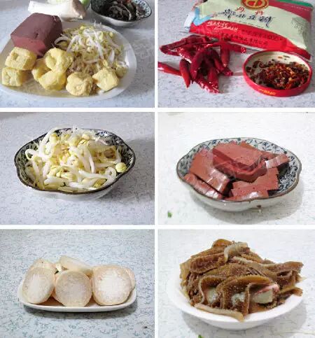 鸭血300克;百叶200克;白菜;黄豆芽;杏鲍菇;豆泡;