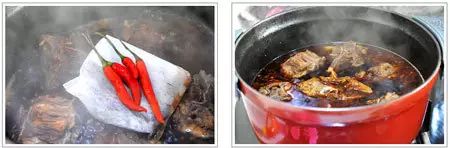 料酒2汤勺;盐2茶匙;冰糖10颗,香辣火锅料2汤勺;