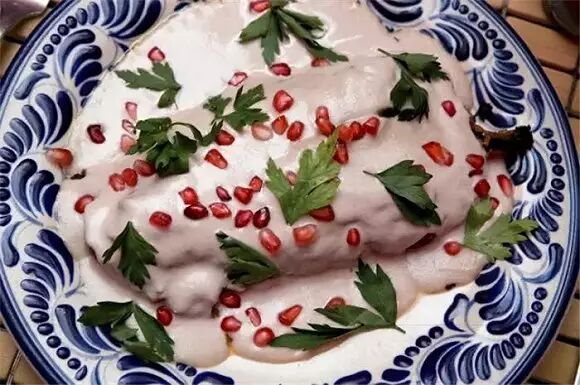 埃布拉的招牌菜是Chile en Nogada,这道菜将核桃酱和石榴籽盖在包裹着肉的青椒上。一眼看去,你就能明白为什么这是一道爱国且喜庆的菜肴,它与墨西哥国旗的三色——红、白和绿契合,而且这道菜要在墨西哥独立日即每年的9月16日那天来品尝。