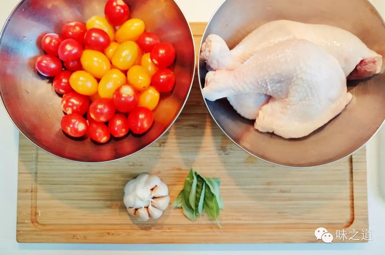 烤好的鸡腿,皮非常脆,而鸡肉细嫩多汁。小番茄烤过后,酸味会更明显,配着鸡肉吃提鲜增香。至于大蒜头嘛,就完全变成柔软的奶油质感,小心一吃就停不下来哟。