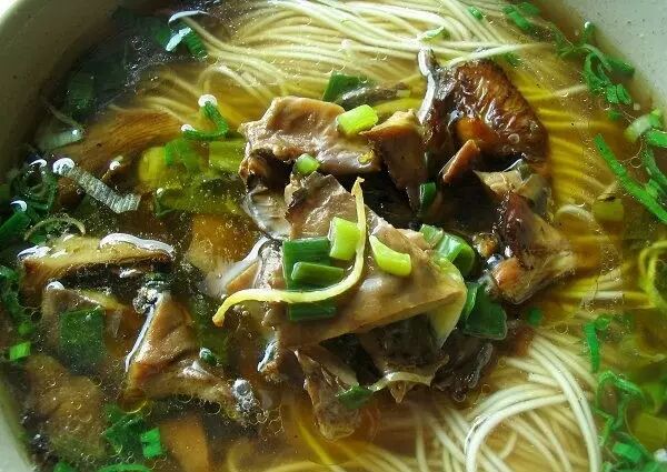 蕈油面本是江苏常熟兴福寺和尚食用的斋面,后来被一位面馆老板带到苏州以后,颇受当地食客的喜爱而风靡姑苏城,只是蕈油面中的野生松蕈极难采摘且制作起来也不容易,所以苏州城里提供蕈油面的面馆极为少数,一碗上好的蕈油面汤头鲜香美味中带着浓郁菌香以及野生松蕈的爽滑鲜嫩的口感让很多人都是趋之若鹜,相传宋氏三姐妹在吃过这碗蕈油面时也是极为赞赏。