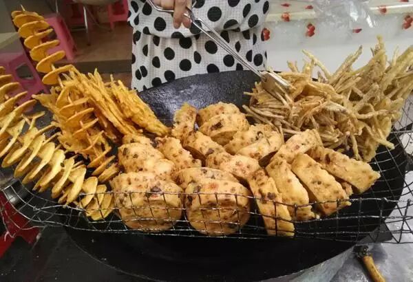 一种油炸的粿类小食,香脆可口,很受小孩子的喜爱。炸猪脚圈的工具很特别,需要一个特制的器皿装原料,炸出来才能成两三厘米高的圆柱形,因为像是从猪蹄上切下来的形状,所以人们美其名曰“猪脚圈”。猪脚圈主料是粳米粉和木薯粉加水调成的粉浆,里面是芋头丁、黄豆、生葱珠、五香粉等。