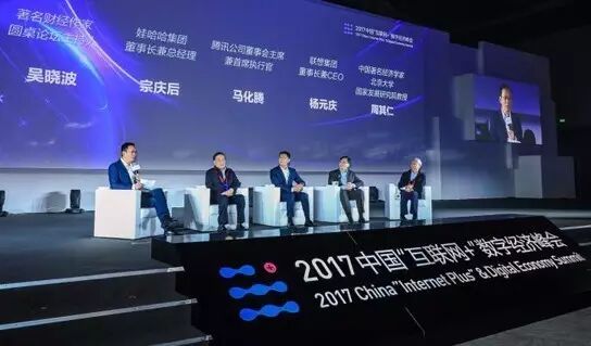4月20日,2017中国“互联网+”数字经济峰会在杭州举行,马化腾、宗庆后、周其仁、杨元庆,以及财经作家吴晓波同台探讨“互联网+”赋能经济转型。